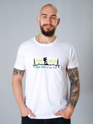 Тази мъжка, планинска тениска, изобразява катерач отправен към върха. Страхотен подарък за планинари, туристи, катерачи и любители на дивата природа.