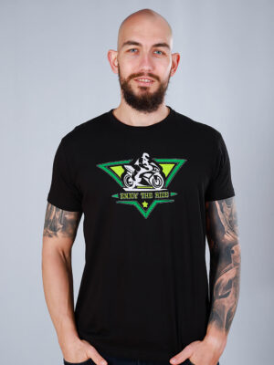 Тениска с бродерия моторист на мотор.