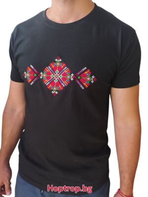 Мъжка тениска с Видинска шевица. Богати и наситени цветове по модел на автентична бродерия.