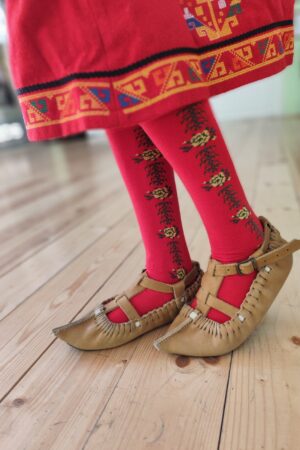 Детски 3/4 червени чорапи с цветя. Модел "Рози".