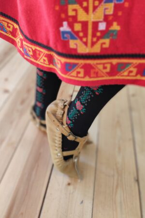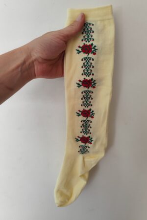 Фолклорни чорапи до коляното! Изчистен модел с цветя от двете страни на крака по дължината. Ластична плетка.