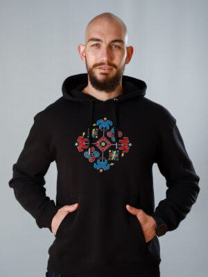 Унисекс блуза с качулка с бродирана Елбетица. Елбетицата е един от най-често срещаните елементи в българските народни шевици, която олицетворява мощ и сила.