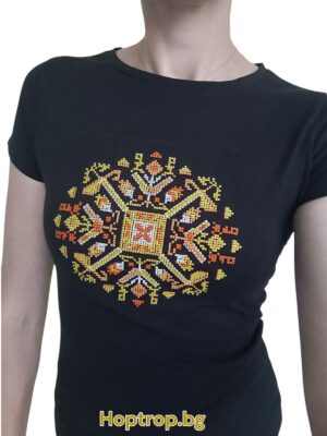 Черна тениска с шевица “Пролет” Модел 6